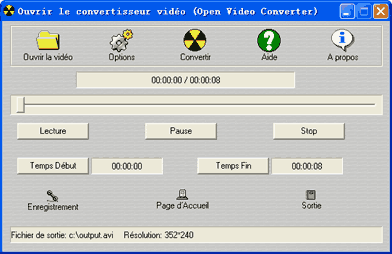 Le convertisseur video(Anglais: Open Video Converter) est un outil pour convertir, diviser et éditer des vidéos. Il peut convertir plusieurs formats vidéo comme des fichiers MPG, AVI, ASF, WMV vers des fichiers AVI. Le convertisseur vidéo peut changer la résolution, la fréquence, le codec de compression vidéo et le codec de compression audio.
