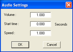 button, or right -click an item directly, the dialog will popup. You can configure volume, start time and playback speed of each sound track.