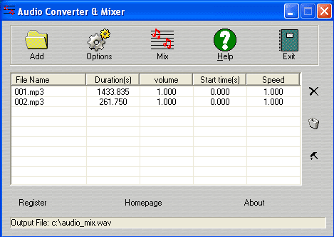 at the right of the control panel, adjust the item sequence. - At last click the MIX button to mix your sound files.